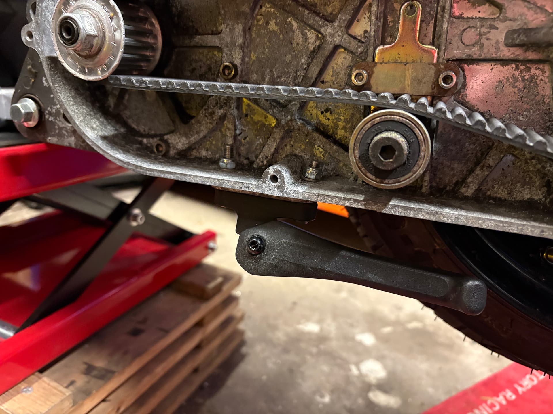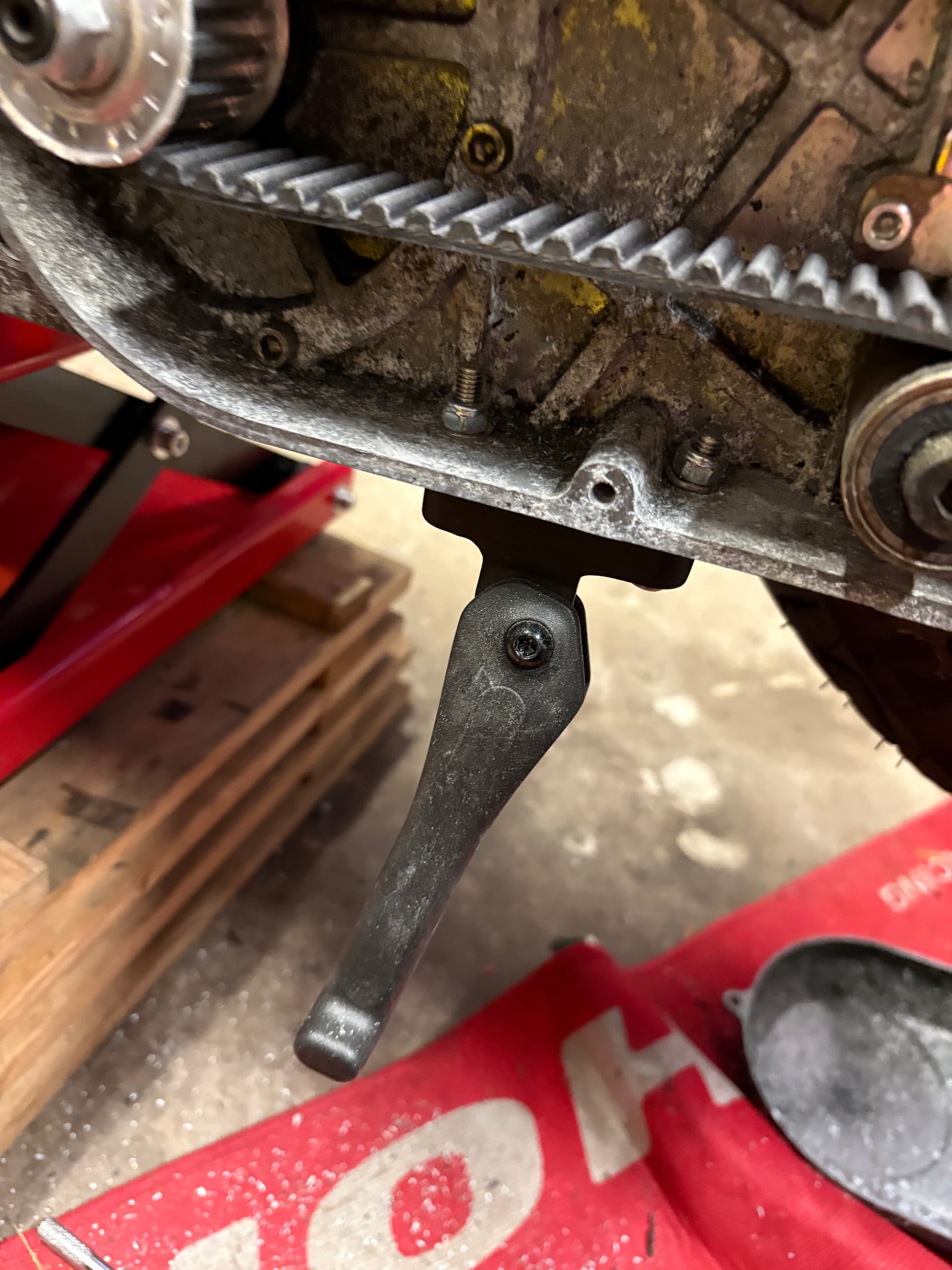 So it’s just the kickstand to re fit and then I’m completely done. Can’t quite work out how to do it though, now that the bike is off the bench I can’t get enough room under it to get a drill under (and straight). Hmm. Need a proper motorbike lift…
