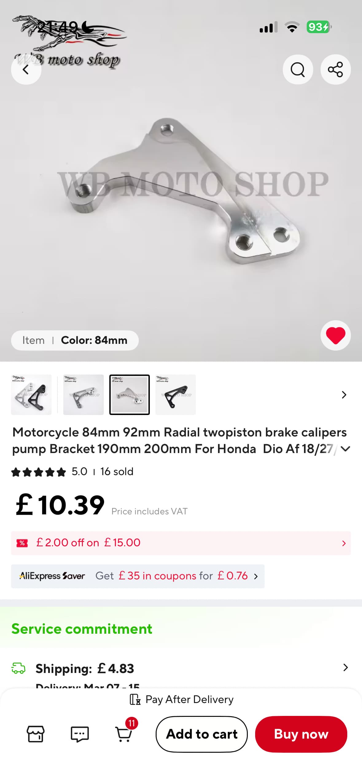 So I’ve ordered some dio shocks. They are 10mm longer (310mm instead of 300mm) and the caliper bolts are closer together (84mm instead of 92mm) but you can get them for <£40. Plus £10 for the caliper bracket.